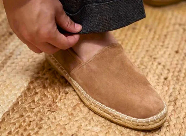 Crafted from the finest sheepskin leather, our suede is celebrated for its ultra-soft texture, natural breathability, and elegant drape. The hide is gently turned and buffed from the inside, revealing a subtle, velvety nap on the surface. Lightweight yet refined, it wraps the foot with a barely-there feel — effortlessly merging barefoot comfort with elevated summer style. Each piece is touched by expert artisans, ensuring perfect edge finishing and an impeccable suede surface with enduring character.